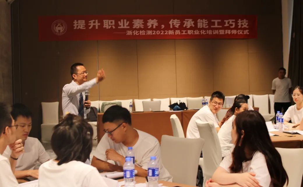 為促進新員工快速適應工作,做好職業化過渡,了解公司概況、體系、HSE、財務制度,更好更快融入浙化檢測大家庭,浙化檢測于8月17日舉行了2022新員工職業化培訓暨拜師儀式。